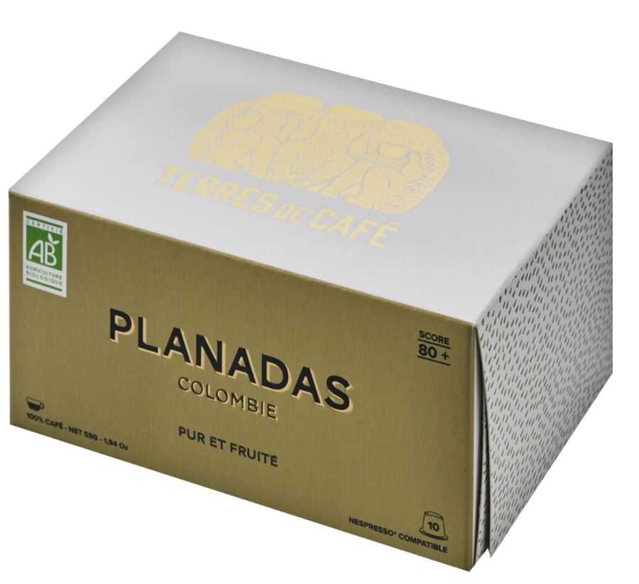 Además del café en grano, vamos a enseñar café en cápsulas. En primer lugar, tenemos este café Planadas de Colombia. Se trata de una mezcla de cafés de la región, siendo considerado un producto BIO de El Corte Inglés.