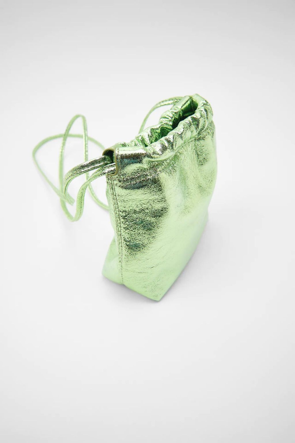 Para terminar con este listado de tendencias de Zara, más vale que te des prisa para hacerte con este saco metalizado en color verde. Y es que los complementos también deben llamar la atención, y qué mejor forma de lograrlo que con este saco. Su cierre es mediante fruncido de imán, y si el color verde no te convence, también lo tienes en rosa. El precio de este es de 19,95 euros.