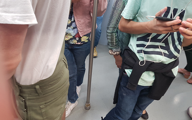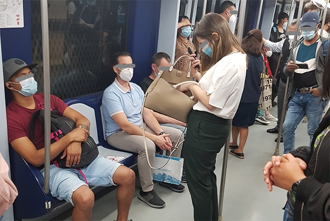 El truco está, y no siempre lo consigue, en disimular la verdadera realidad con fotos de andenes. Nunca del interior de un vagón, donde se encuentra la verdadera concentración; y donde no existe la manera física de generar ni siquiera un metro de separación entre las personas, entre las cuales algunas respetan perfectamente la obligación de llevar la mascarillas bien puesta, y otros…