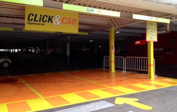 El Corte Inglés no sólo te puede llevar la compra a tu domicilio sino que tiene un servicio para hacer la comprar online y recogerla en el aparcamiento. Ideal por ejemplo si te vas de viaje o a una segunda residencia y necesitaras hacer compras. Lo compras en tu casa, coges el coche, lo recoges en el parking llamando a un interfono tras concertar previamente hora, centro y plaza, y continuas viaje o vuelves a casa. Se llama Click&Collect en los centros de El Corte Inglés y Click&Drive en Hipercor. El importe mínimo requerido es muy bajo, 30€, y suele tener un plazo de entrega a partir de dos horas.