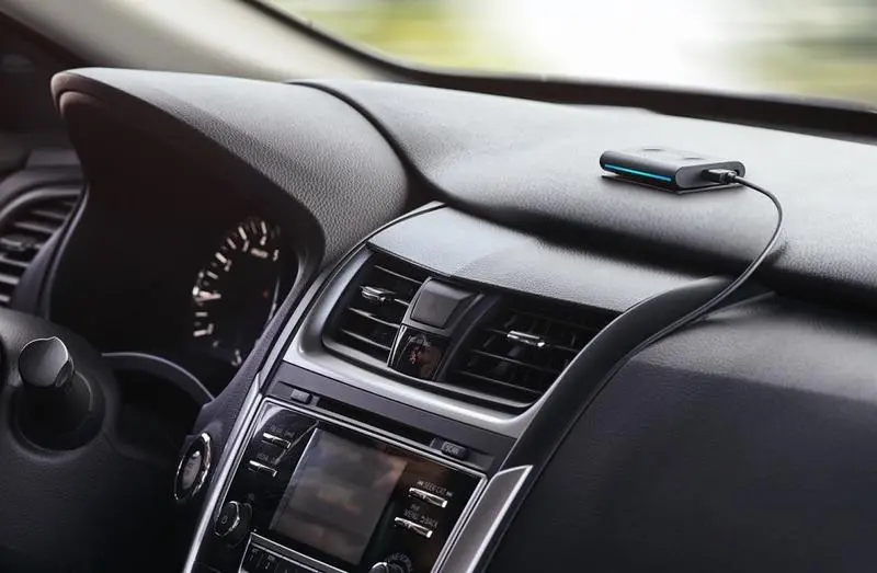 Los dispositivos Echo Auto se alimentan a través de la toma de corriente del coche o del puesto USB integrado y se conectan al equipo de sonido a través de una toma de audio o Bluetooh.