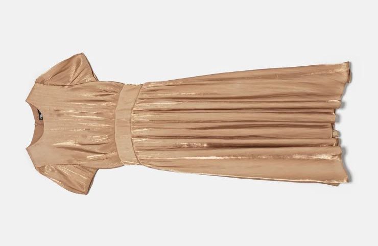 Zara nos oferta este vestido con cuello redondo y manga corta, forro interior y cierre en espalda con cremallera oculta en costura.