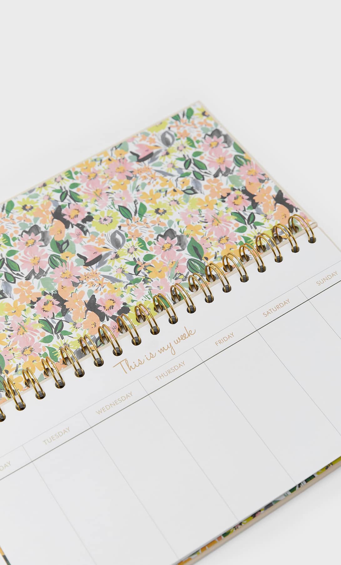 Un cuaderno apaisado con anillas en el que tienes los diferentes días de la semana y así puedes ir apuntando tus citas importantes. Lo bueno es que no viene con fechas premarcadas, así que lo puedes organizar como prefieras y comenzar a utilizarlo en cualquier época del año. Su elegante diseño exterior y si alegre interior de flores hacen que tu día a día sea un poco más ameno.
