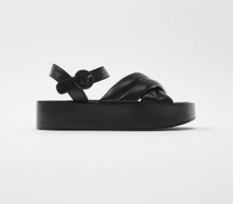 Las plataformas llevan en los escaparates varios años y son una tendencia que hemos visto tanto en invierno como en verano. Son cómodas, originales y juveniles, y aportan unos centímetros más de altura. En Zara encontramos de tiras cruzadas de piel, tipo sandalia pero con un acabado acolchado muy confortable. Se cierra con una cinta alrededor del tobillo y una hebilla lateral. La plataforma tiene una altura de 4,5 centímetros y están disponibles en color negro. Se pueden adquirir por 49,95 euros.