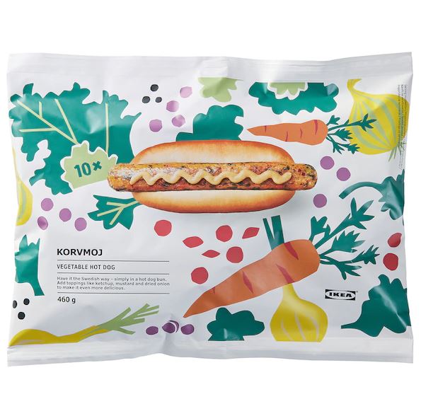 Los perritos KORVMOJ de Ikea son totalmente vegetales y por ello, son un producto estrella para veganos. Está hecho con verduras de todo tipo, como col rizada, cebolla, quinoa o zanahoria entre otros muchos.