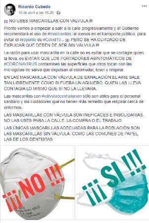 El tipo de mascarillas que no deberíamos utilizar, según las advertencias de la OCU y expertos en la materia, son las que llevan una válvula incorporada. Según el responsable técnico de la Asociación de Empresas de Equipos de Protección Individual, Javier Díaz Alonso, este tipo de elementos están pensados para que el portador no inhale aerosoles o microorganismos, igual que las mascarillas sin válvula. Este dispositivo tiene el objetivo de facilitar la respiración de la persona que la lleva y se suelen utilizar en laboratorios de bioseguridad donde se trabaja con material biológico de riesgo. Sin embargo, cuando se trata de evitar contagios entre dos personas, la válvula facilita la salida del aire con micropartículas, así que suponen un riesgo para las demás personas.