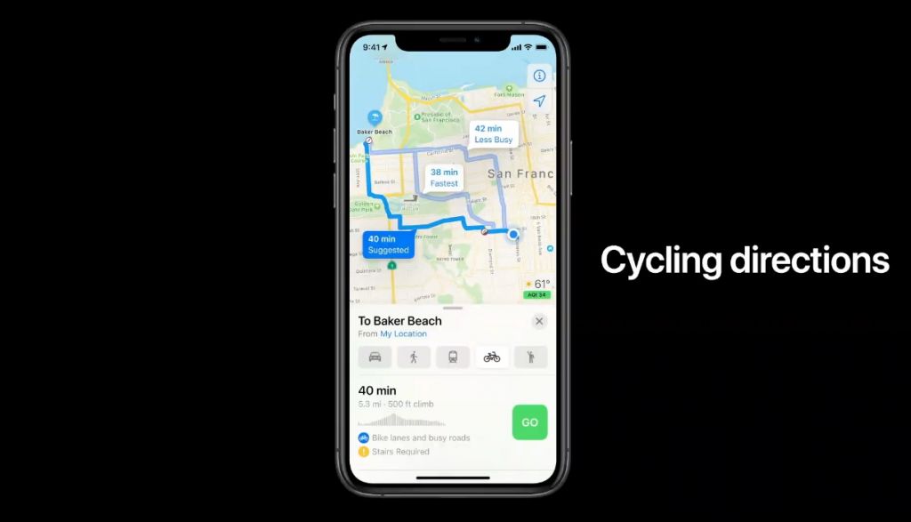 La app Mapas, la versión de Apple de ‘Google Maps’, incrementa sus funciones recomendándonos lugares de interés, así como sirviéndonos de rutas en bicicleta e información útil para los que usen coches eléctricos. Nos mostrará puntos de recarga cercanos y datos como la inclinación de las carreteras.