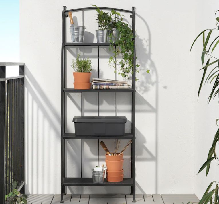 Si necesitas algo de espacio de almacenamiento o quieres disfrutar de unas bonitas plantas sin que estas ocupen mucho espacio, entonces te va a venir genial la estantería Käckö, inspirada en las muebles clásicos de acero forjado. Encaja a la perfección en todo tipo de decoraciones y les aporta un toque romántico.