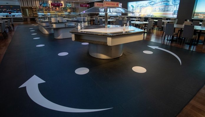 El nuevo servicio trata de reducir el contacto personal con los clientes, mediante barreras de protección física con las que se muestran los alimentos a los clientes, pero que serán servidos por los trabajadores. Las ubicaciones de las comidas, los descansos y las exhibiciones de los alimentos pueden modificarse o restringirse a espacios reservados explícitamente para una reunión o un evento.
