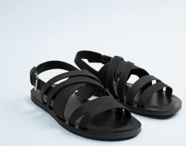 El último producto masculino de la lista es este par de sandalias de tiras de piel. Se trata de una sandalia de color negro, tipo romana con tiras cruzadas y cierre en el talón. Tiene tallas de la 39, a la 45, aunque se ha agotado en la 41 y la 42 por el momento.
