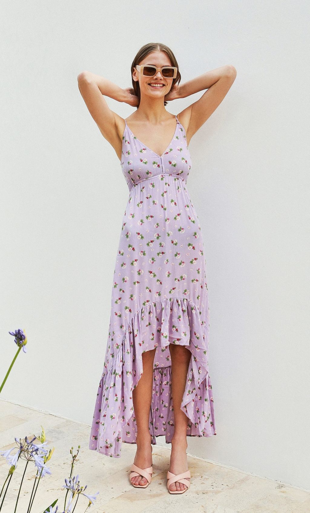 Este diseño presume de escote de pico con elástico en la cintura para quien busca lucir un poco su silueta. En el bajo tiene un elegante volante con detalle asimétrico, un detalle que encantará a quien quiere presumir de zapatos nuevos y bonitas piernas. Tienes dos colores para elegir, malva y marrón, y su precio es de 25,99 euros.
