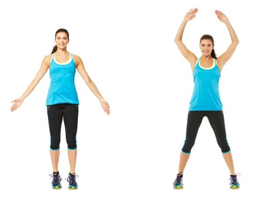 Es uno de los ejercicios más sencillos pero muy eficaces para fortalecer la espalda, las piernas y los glúteos y quemar calorías. Para la posición de inicio hay que colocarse con las piernas separadas a la anchura de nuestros hombros y después con un salto juntamos las piernas al mismo tiempo que levantamos ambos brazos a la vez para que las manos se toquen por encima de la cabeza. Es importante mantener la espalda recta, la cabeza erguida y la vista al frente. Saltando trabajamos mucho los gemelos, pero también estamos ejercitando los glúteos y los aductores. Además trabajamos los músculos abdominales y esto proporciona con el tiempo mayor equilibrio y estabilidad. Según la velocidad y la intensidad de los saltos podemos entrenar nuestra capacidad pulmonar y cardiaca, y aumentar las calorías que quememos durante el ejercicio.