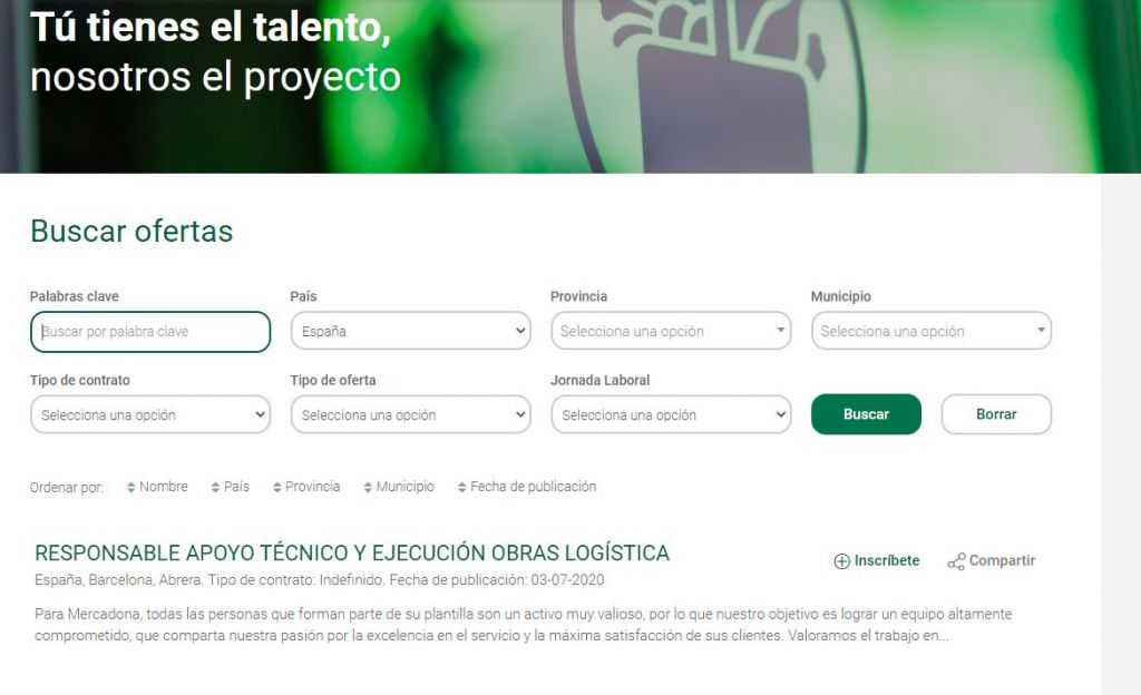 La nueva aplicación de búsqueda de empleo del supermercado valenciano es muy intuitiva y fácil de usar. Una vez que hayas entrado a buscar empleo, podrás filtrar por las diferentes ofertas de trabajo y escoger la que más te guste. Podrás filtrar por palabra clave, país, tipo de contrato, tipo de oferta, jornada laboral, provincia y municipio.