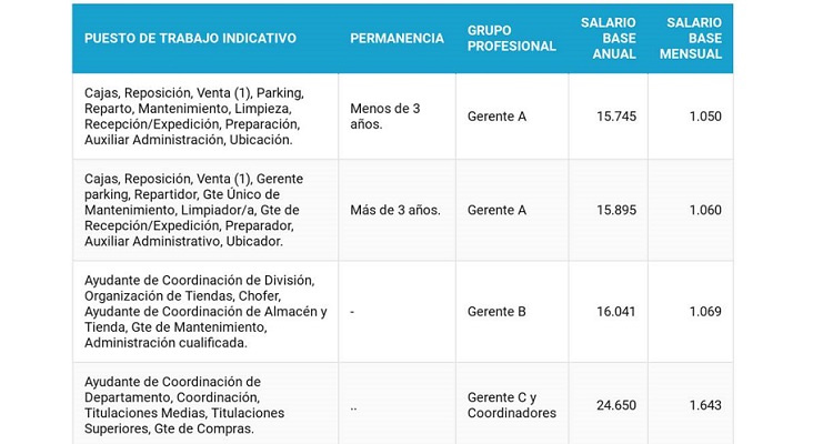El salario sube bastante con la antigüedad, subiendo el salario base y añadiendo un complemento salarial del 11% anual hasta el quinto año. Eso hace que al final cobres un 50% si llevas 5 años que si has entrado nuevo. A esto hay que sumar las subidas del IPC que el supermercado de Juan Roig suele aplicar en sus contratos.