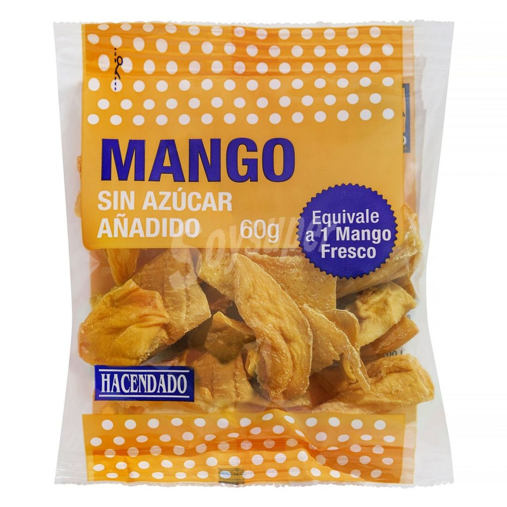 Dentro de los más populares que podemos mencionarte tenemos el de mago, este equivale a 1 mango fresco, se trata de una presentación de 60 g sin ningún tipo de azúcar, gracias a la marca Hacendado. Este snack promete ser el acompañante ideal en esos momentos donde te gana la ansiedad, y deseas picar algo distinto, estarás disfrutado de su sabor tan increíble, y a decir verdad, el mango es divino, y merece la pena comprar este snack para tenerlo en casa para cuando quieras darte un gusto.