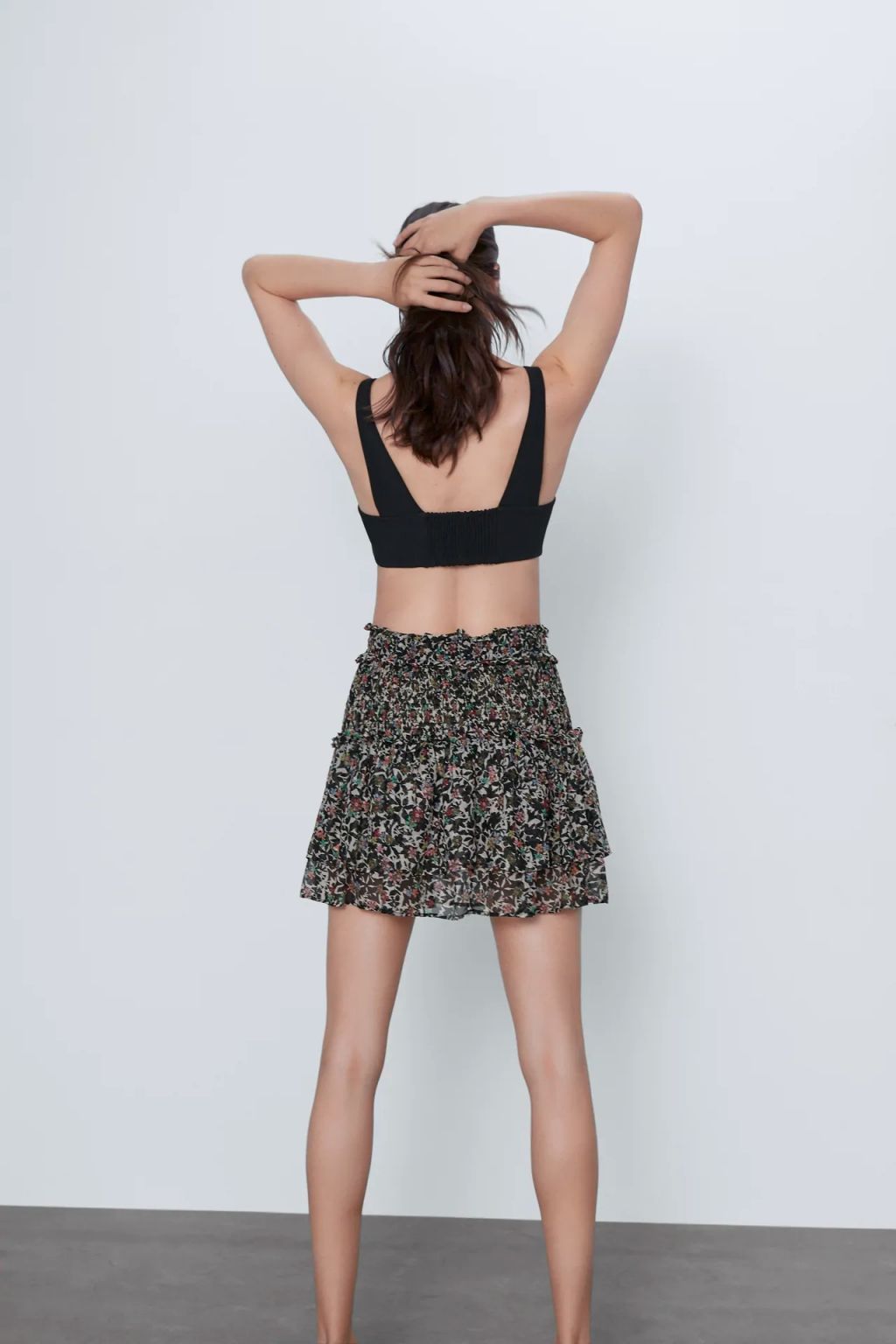 Otro de los diseños más atractivos de Zara para lucir piernas durante este verano es esta falda mini estampada con volantes. Antes tenía un precio de 29,95€, pero ahora tiene un descuento aplicado del 45% que la deja en 15,99€.