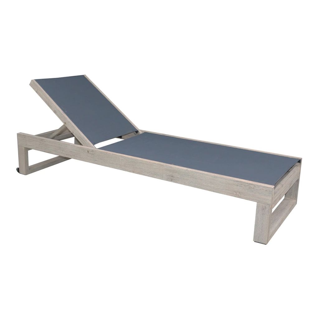 Esta tumbona tiene una estructura creada en madera de acacia cepillada con un revestimiento en multifibra. Materiales ligeros y duraderos.