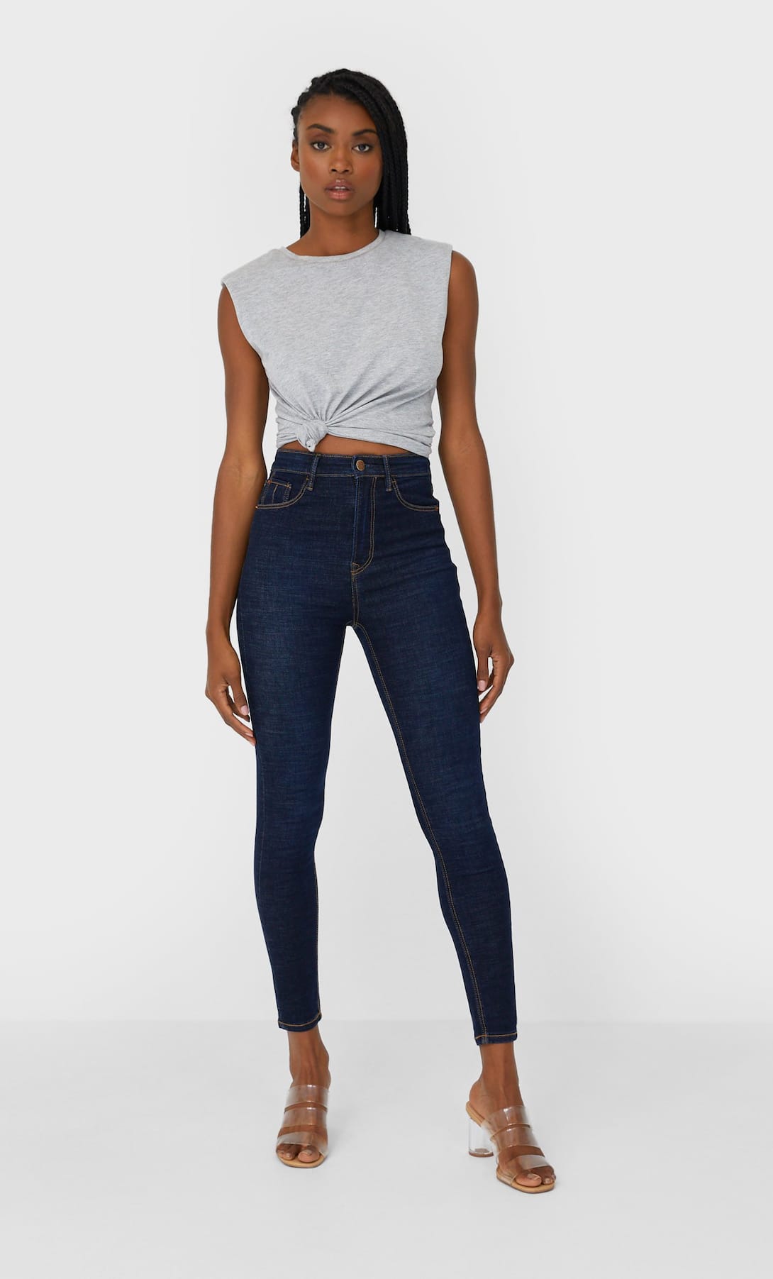 Este diseño de la marca de ropa perteneciente a Inditex es de tiro alto y tiene cinco bolsillos. Está disponible en dos colores, azul oscuro y azul lavado, el cual tiene unas pequeñas roturas en la parte superior. La cantidad de tallas es ideal, pues no dejan a casi nadie fuera, tienes disponible desde la 32 hasta la 44, y el precio de este modelo es de 19,99 euros.