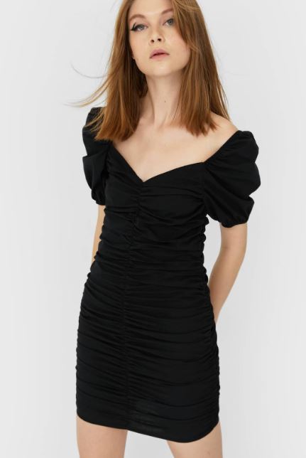 No es una tarea fácil conseguir el vestido ideal para esa ocasión especial, pero dejar la decisión en las manos de un experto de la moda no tiene precio, eso es algo de lo que nunca te vas a arrepentir. Es necesario que confíes en Stradivarius porque tiene los mejores cortes de vestidos para darte elegancia, glamour y mucho estilo, ese estilo que siempre quieres mostrar a la hora de caminar y lucir tus atuendos. Este vestido corto fruncido en un clásico, pues el color negro como nunca pasa de moda, siempre será una salida más que perfecta para esas reuniones importantes de este verano.