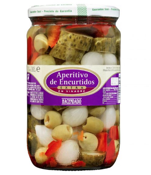 La variedad de encurtidos de Mercadona también es grande, y hace las delicias de los amantes de estos ricos aperitivos que además, son saludables. Aunque muchas personas crean que deben evitarlos porque engordan mucho, la realidad es que son saciantes, eliminan el deseo de tomar azúcar (esto es muy interesante si estamos a dieta), y son una fuente muy rica en probióticos que mantienen nuestra flora intestinal en perfecto estado. Volviendo a los encurtidos de Hacendado, queremos destacar el bote de aperitivos extra en vinagre, que está compuesto por una mezcla de pepinillos, aceitunas verdes, cebollitas y pimiento rojo. Ideales para picotear a cualquier hora o para aperitivos, acompañando a algún refresco.