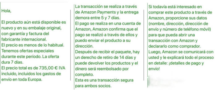 Amazon utiliza sus servicios Amazon Vendor y Amazon Seller para incrustar en su plataforma a proveedores grandes y pequeños de todas partes del mundo. Sin duda Amazon realiza su chequeo a la hora de validar a una firma como apta para vender sus productos en Amazon, pero tal y como han comprobado desde Escudo Digital, su sistema no es perfecto. Esta publicación sobre seguridad alerta de los muchos intentos que se producen cada día en Amazon de desviar al usuario del proceso de compra predeterminado para realizar estafas.