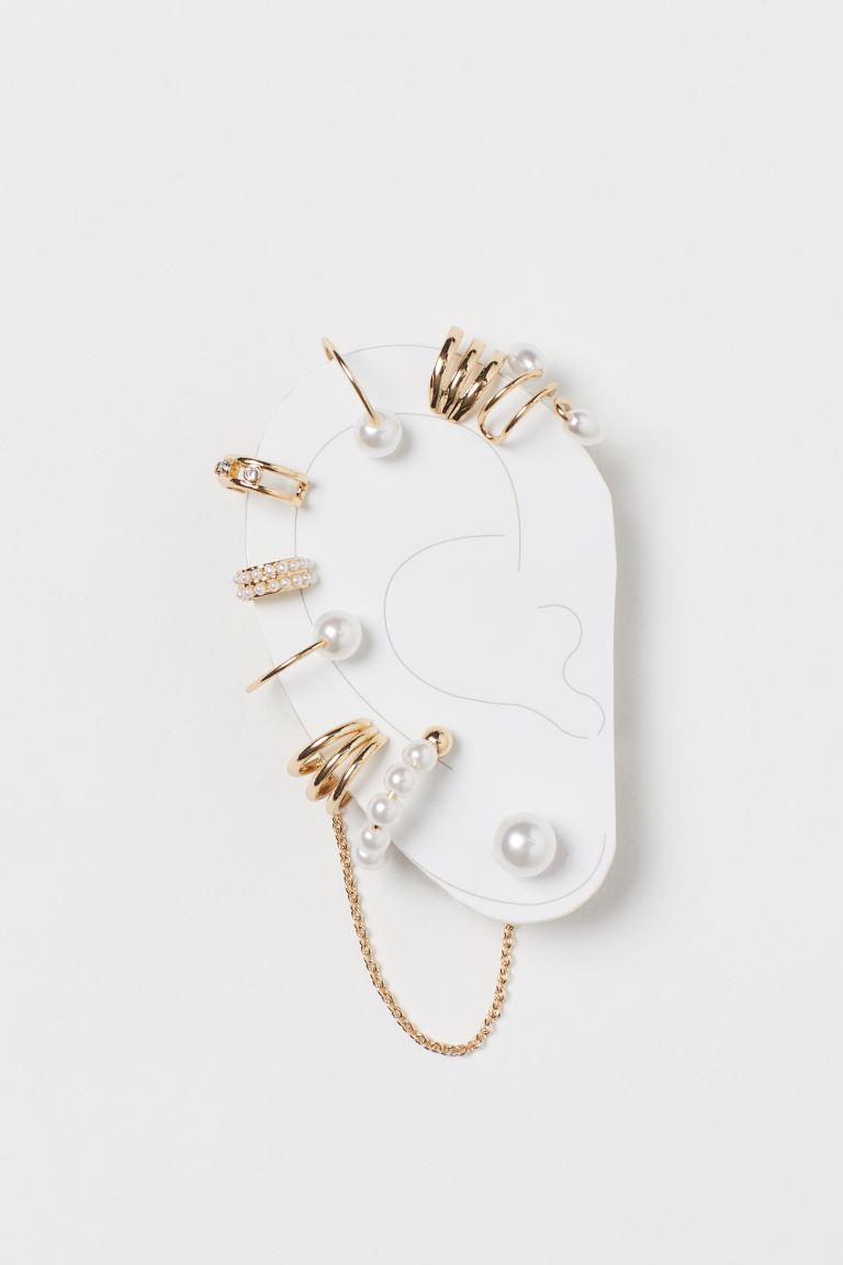 Llevar muchos pendientes en la oreja también es algo que se ha visto en muchas ocasiones en influencers y demás celebrities. Pero no todo el mundo quiere llenarse de agujeros. Para ello hay una solución, y es que en H&M te puedes encontrar este pack de 9 pendientes que te van a encantar. En primer lugar, un pendiente normal unido por una cadena a uno que resulta ser falso, y que tan solo se engancha a la oreja. El resto de pendientes se sujetan de la misma forma, por lo que no tendrás que ir a llenar de agujeros tus orejas.