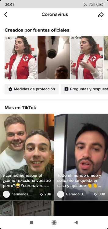 Este 2020 está marcado por la pandemia de Covid-19 que asola no solamente nuestro país, sino el mundo entero. Por ello, la aplicación TikTok ha puesto a tu disposición un apartado dedicado a ella, con información útil creado por fuentes oficiales como la Cruz Roja, añadiendo las medidas de protección y algunas preguntas y respuestas, entre otras cosas.