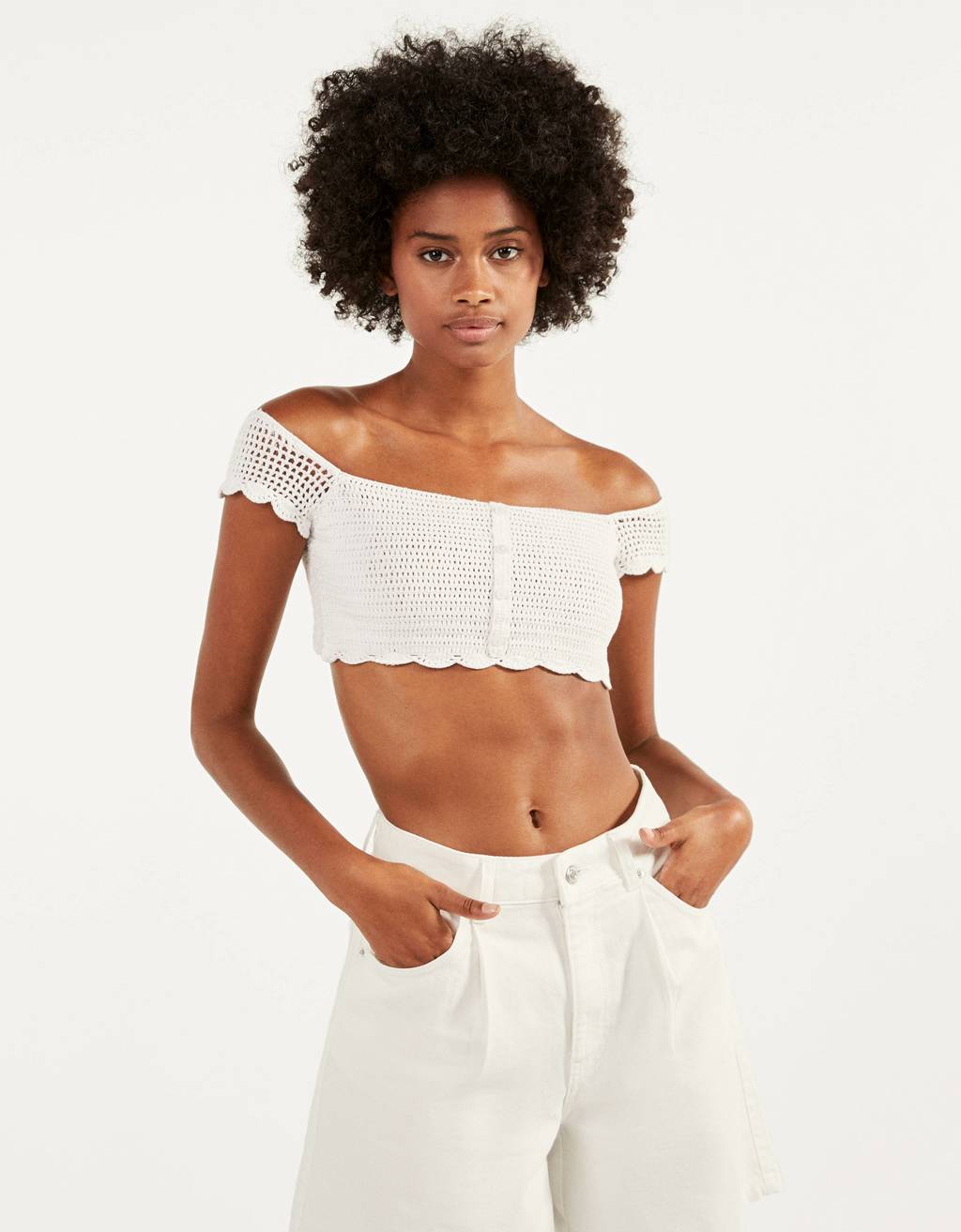 Es un top corto con fruncido elaborado totalmente a crochet. Perfecto para las jornadas más veraniegas y para tus estilismos tanto de día como de noche. Puedes llevarlo con un pantalón corto de vestir tipo bermuda, pero también queda muy bien con un pantalón largo. Si lo combinas con unos shorts tienes el conjunto perfecto para plantarle cara al verano.