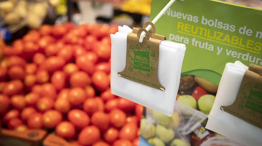 Bolsas de malla para la fruta no tienen en Mercadona. Lo que están haciendo es quitar envases en determinados casos, y sustituyendo materiales, en otros, a la par que su deseo es el de usar más material reciclado.