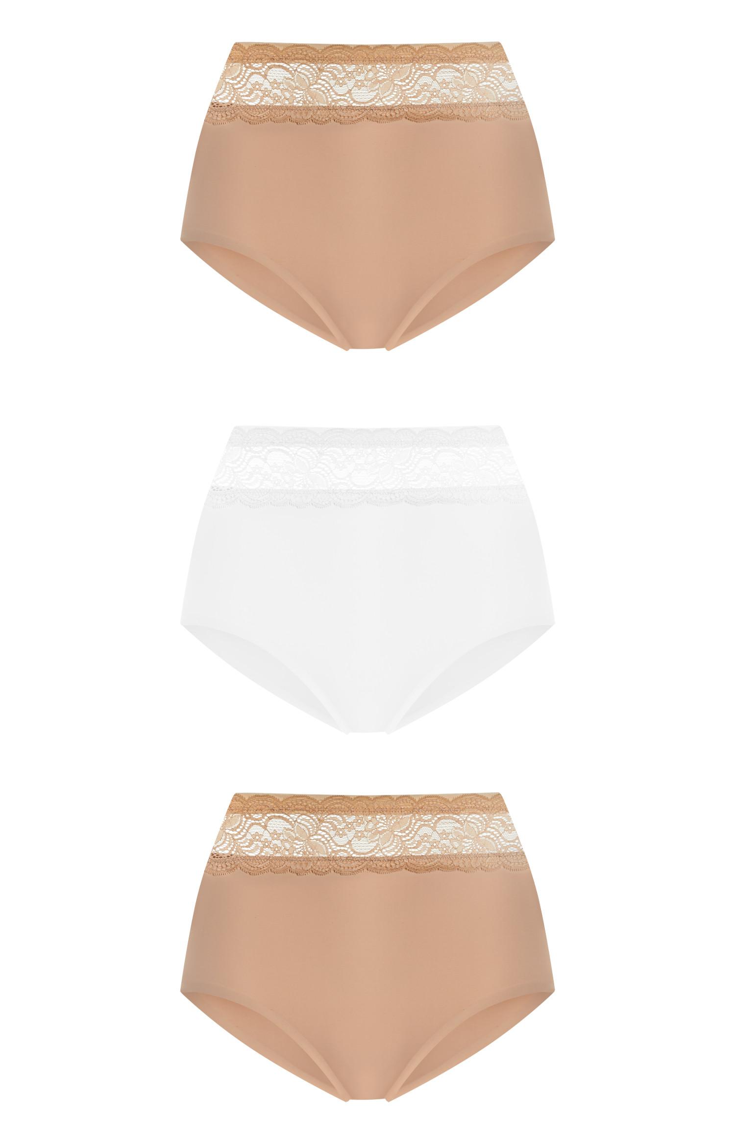 Y como ocurre habitualmente en el mundo de la moda, con la lencería también pasa que a veces se lleva una cosa y a la vez exactamente la contraria. Lo apreciamos en este pack de tres bragas de Primark de cintura alta, que consiguen el efecto contrario al que hemos mencionado antes: tapar más carne y recogerla un poco. Además, no tienen costuras muy gruesas por lo que en ningún caso son prendas que vayan a quedar mal con nuestro outfit.