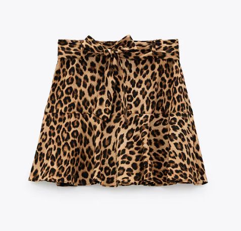 El estampado de leopardo tiene fans y detractores, el caso es que nunca pasa de moda. Tiene todo tipo de connotaciones y curiosamente, se puede ver en prendas y eventos súperformales y en looks informales y cañeros. Estas bermudas de Zara son ideales para el día a día, de tiro alto y muy favorecedoras con unos tacones. El bajo acaba en volante y lleva un cinturón en el mismo tejido con el que se puede hacer una lazada. Cierra en el lateral con una cremallera que queda oculta en la costura. Fabricada con 100% poliéster. El precio es de 22,95 euros.