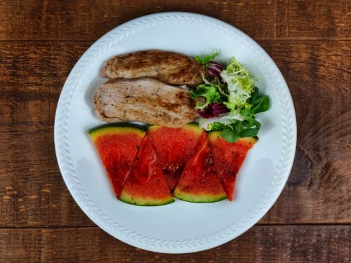 Y si hablamos de proteínas, está la pechuga de pollo a la plancha, carne a la plancha y por último, el pescado al horno o a la plancha. Todos estos acompañados siempre de sandía, ésta es la clave de la dieta para liberarte de esos 5 kilos.