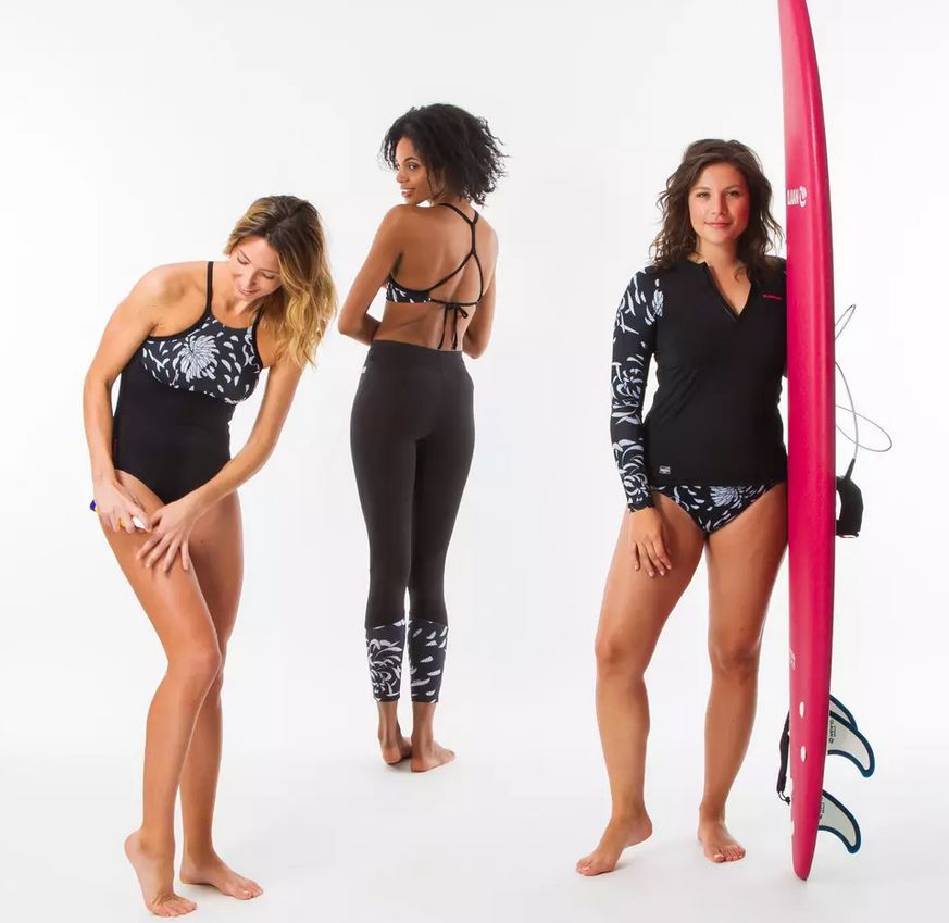 Para las mujeres surfistas de todos los niveles, Decathlon propone este bañador de una pieza especialmente diseñado para que resista el envite de las olas de 1 metro de alto (para grandes impactos, mejor el neopreno). Este bañador de una única pieza con envolvente por delante para proteger a la mujer de las irritaciones de los golpes contra el agua, sin embargo, deja la espalda al descubierto. Por supuesto, notarás la ventaja de tener libres los hombros, sobre todo durante los movimientos de surf o padel surf.