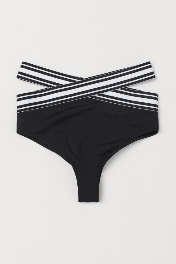 Con esta braga de bikini de H&M serás la más original de la playa o la piscina. Tiene un estilo ligeramente deportivo pero lo que le da el toque especial es el elástico ancho que va cruzado en la cintura, por delante y por detrás. Está toda forrada por dentro para que no se vea más de lo que tu quieras enseñar. La parte de arriba tiene forma de top deportivo, tambéon con asas anchas. Está fabricada con elastano y poliamida, para que se seque en un tiempo record. El precio es de 10,99 euros.