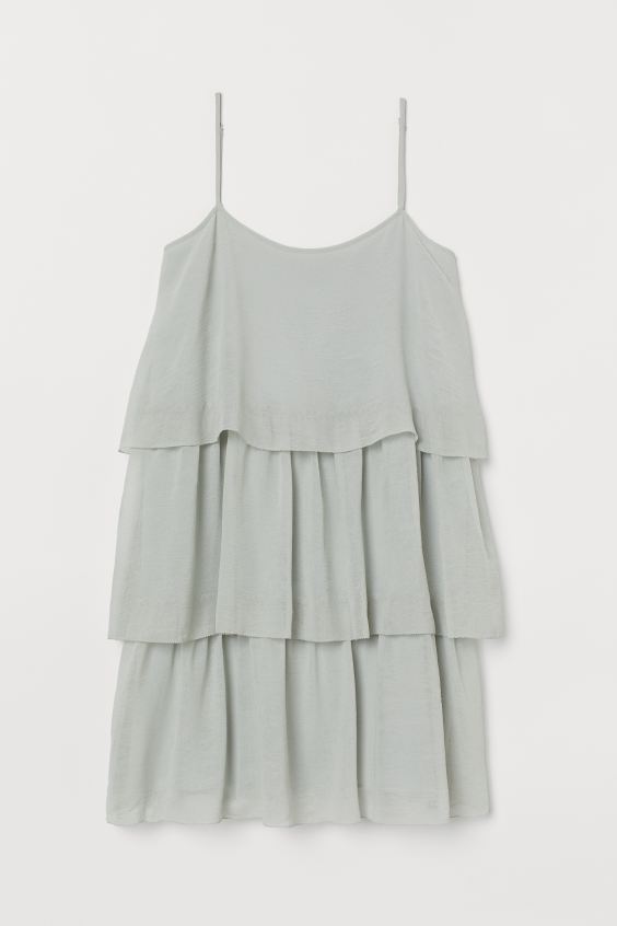 No nos hemos podido resistir a incluir en el listado este precioso mini vestido con volantes escalonados, muy favorecedor sobre todo si prefieres no marcar el contorno de tu cuerpo. Tiene unos tirantes muy finos, ajustables para que puedas elegir hasta donde quieres bajar el escote. Lleva forro y está fabricado en poliéster con efecto arrugado. Está disponible en dos colores, lila y verde claro. Puede ser tuyo por 21,99 euros.