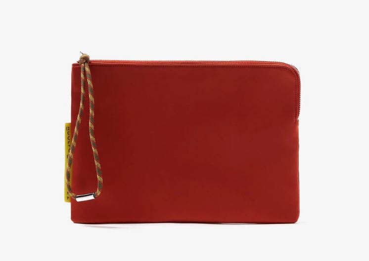 El siguiente producto es esta cartera de mano de Adolfo Domínguez. Es una cartera de color naranja, hecha de 100% poliéster, cierre de cremallera y varios compartimentos en el interior para guardar lo que sea.