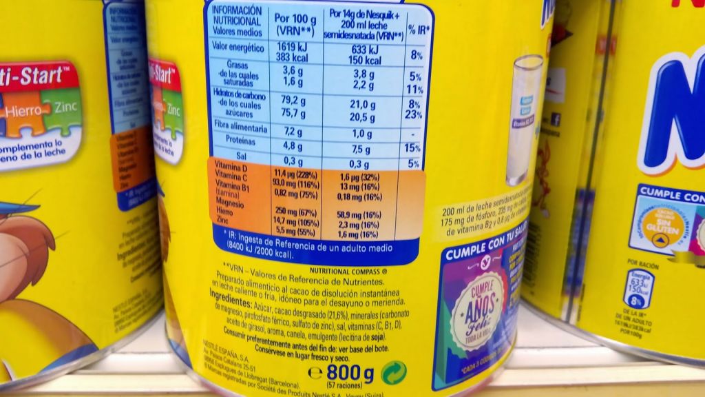 Ahora le toca el turno al Nesquik, que también tiene una serie de ingredientes que le dan ese sabor que gusta tanto a parte de la población frente al Cola-Cao. Solo analizando su composición y tabla nutricional se podrá determinar quién es el ganador de bebida chocolatada más saludable.