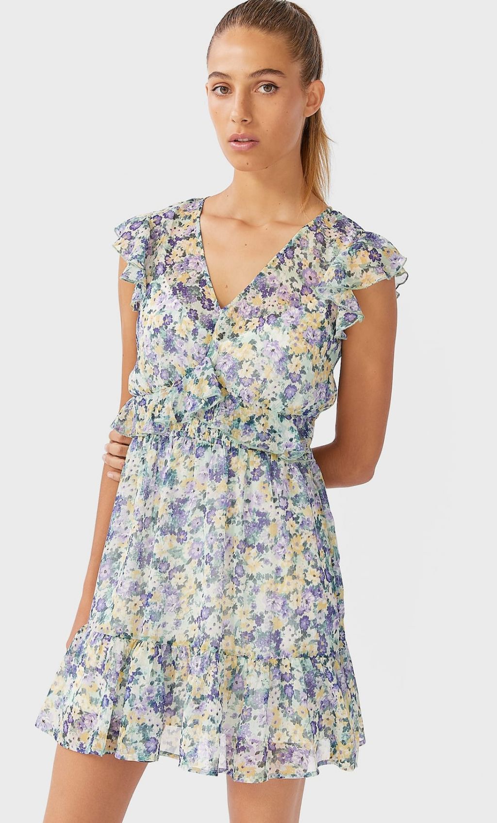 19,99€ es lo que te separa a ti y a este fantástico vestido corto volantes con este estampado. Disponible en Stradivarius en varias tallas y multitud de colores diferentes donde elegir.