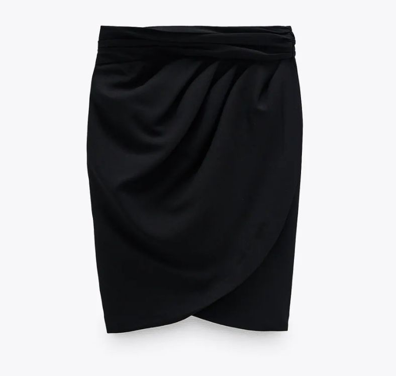 Este modelo en concreto es del tipo de tiro alto y tiene tejido drapeado a la cintura, otro de los hits de la nueva colección de la firma de Amancio Ortega. Tiene el cierre detrás con cremallera oculta en la propia costura.