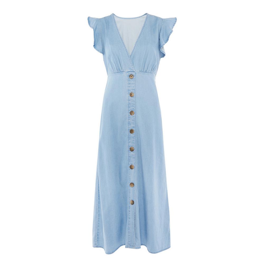 Este vestido largo de Primark cuenta con manga sisa de volantes y abrochado de botones en la parte delantera. En la cintura tiene una goma que ayuda a estilizar el cuerpo. El precio es también un poco más elevado, aunque sin duda merece la pena. El diseño puede ser tuyo por solo 21 euros, lo que no está anda mal.