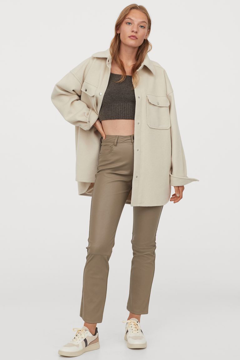 En la moda se puede ser perfecto, pero siempre es necesario de las marcas que saben del tema. H&M es la que te tienta desde la calidad, originalidad, y los precios. Un pantalón en piel sintética es lo que necesitas, y puedes comprarlo a un precio de 24,99 euros. Es un pantalón tobillero de cinco bolsillos en piel sintética.