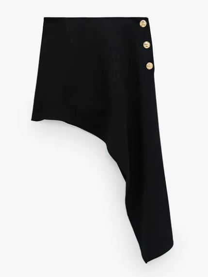 Definitivamente tienes que confiar en las propuestas de Zara, pues la verdad son las mejores. Así como esta falda asimétrica botones de tiro alto.