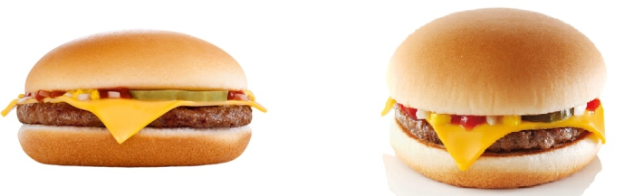 En el Burger King también encontramos una hamburguesa muy similar, es más, se parecen hasta en el nombre, solo que uno es en inglés. La Cheeseburger lleva carne a la parrilla 100% vacuno, pepinillos, ketchup, mostaza y una capa de queso Cheddar deliciosa. Eso sí, tiene un poco menos de calorías, 290Kcal por unidad. Su precio es de 1,30 euros, de las más económicas del Burger King.