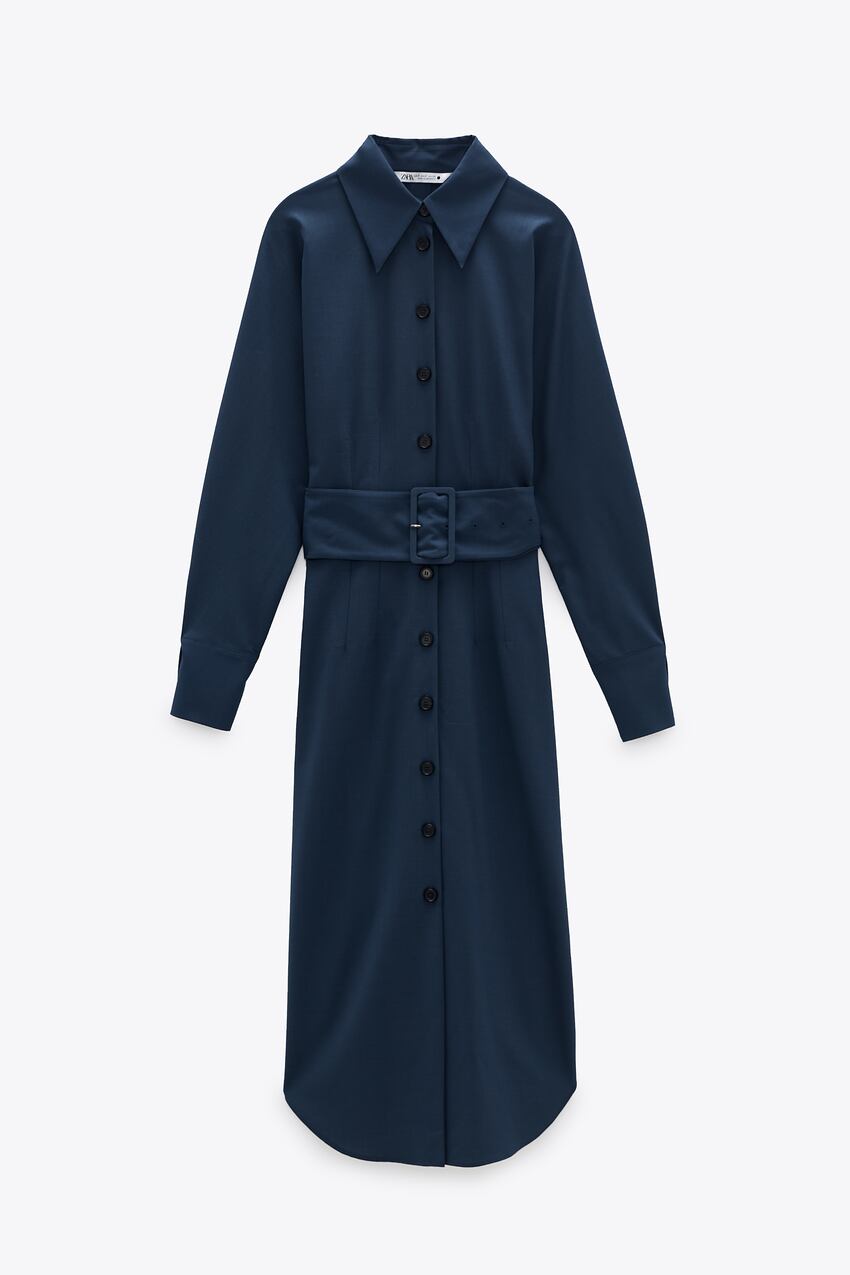 Zara siempre está en esa búsqueda constante de ofrecerles a sus clientes las mejores piezas, para que cual sea la ocasión, no pasen desapercibidas. La idea de ir a una fiesta, implica ir imponente, sobre todo si quieres conquistar la mirada de alguien en particular. Con este vestido camisero cinturón en color marino tienes el éxito asegurado. Cuesta 59,95 euros, y hay tallas XS, S, M, L, XL y XXL.