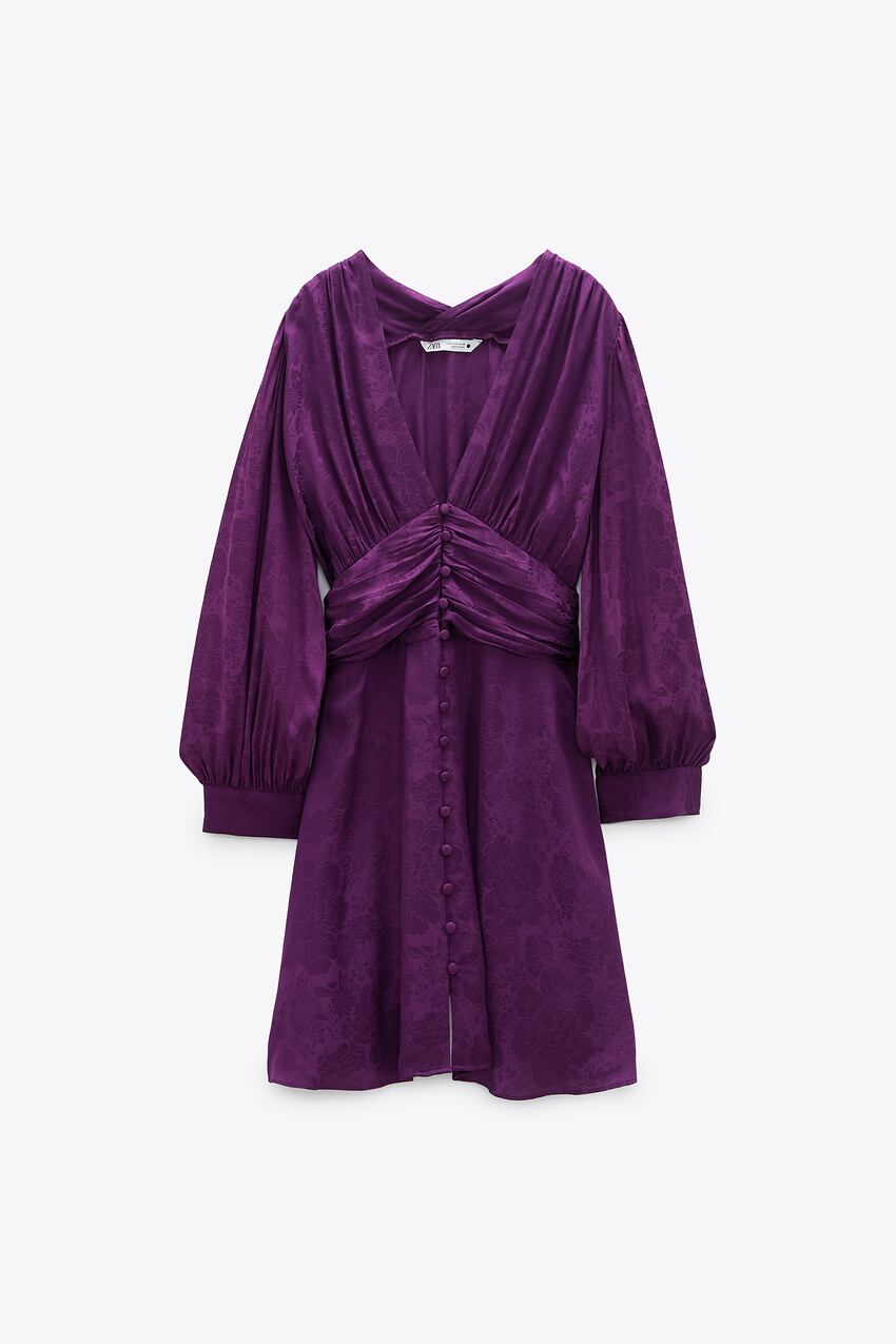 Vale señalar que cuenta con su cierre frontal con botones forrados, al igual que su cremallera lateral en costura. El color lila luce hermoso, y si lo tienes en tu armario, en cualquier momento que lo uses te irá genial porque es versátil. Con Zara tienes los mejores vestidos, y los mejores precios. ¿Qué esperas para buscar el tuyo?