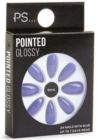 En Primark, puedes encontrar uñas postizas puntiagudas en morado brillante, algo irreverente, pero a su vez está muy de moda, y puedes apuntarte a vivirlo tú misma. Además, el precio es realmente encantador, ya que cuesta solamente 1,50 euros. Te recomendamos que la uses por una semana, y listo, después puedes volver a tus uñas naturales si ningún problema.