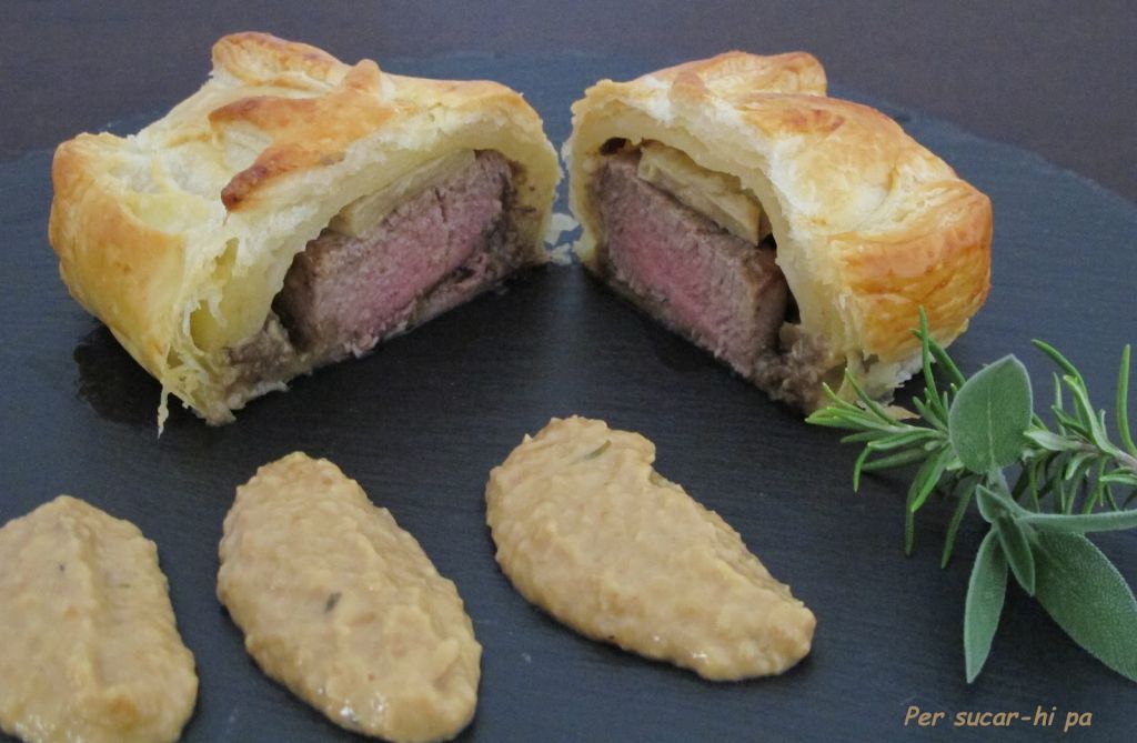 Para elaborar la crema que rodeará nuestro solomillo Wellington, picamos el ajo, la cebolla y los champiñones y los sofreímos en un poco de aceite. Después la mezcla debe triturarse o, si se prefiere, se le puede añadir un vino blanco o brandy y dejar que reduzca hasta que se quede espesa. Algunos cocineros apuestan por untar el solomillo con foie en lugar de realizar esta mezcla, que tiene infinidad de variaciones. Esta que os contamos es sencilla y le va a dar un toque muy especial a la carne, el producto principal de este plato. Ahora es el momento de saber cómo elaborar el solomillo.