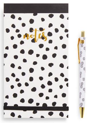 Cuando se trata de escribir, pues los artículos de papelería llegan para que esas actividades puedan ser desarrolladas en su máxima expresión. De hecho, es distinto a escribir en una PC. Por eso, puedes darle un obsequio a quien tú desees si le gusta escribir, con este juego de papelería de estilo dálmata en color negro y dorado. Funciona perfectamente para las notas, y cuenta con su respecto bolígrafo.