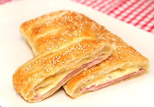 Este tipo de recetas con hojaldre te sirve para cualquier momento del día, además es de bajo costo, sencilla y muy versátil. Lo que debes hacer es desenrollar la lámina de hojaldre y conservar el papel donde viene incluida. En la parte central pones 3 lonchas de jamón cocido procurando dejar Los bordes de arriba y abajo libres. Encima colocas queso y repites la operación hasta que llegues a la última capa. Untas la tapa con mayonesa y cortas el hojaldre para formar trenzas. Una vez lo cierres untas con huevo batido y horneas por 200 grados hasta que esté dorado.