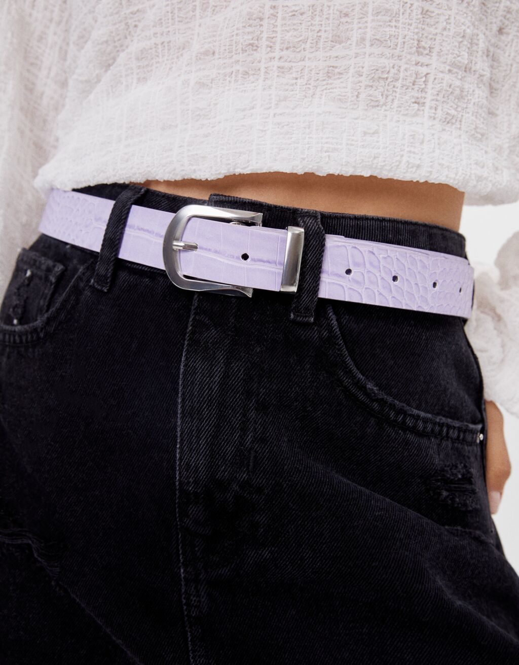 Acorde con el bolso que te hemos mostrado al principio, te presentamos este cinturón con efecto cocodrilo que es una verdadera maravilla. En función de los pantalones con los que los quieras usar, puedes elegir entre el modelo en color negro y morado, este último es más bien claro. Si te gusta y quieres hacerte con uno de estos, puedes encontrarlos entrando en este enlace.